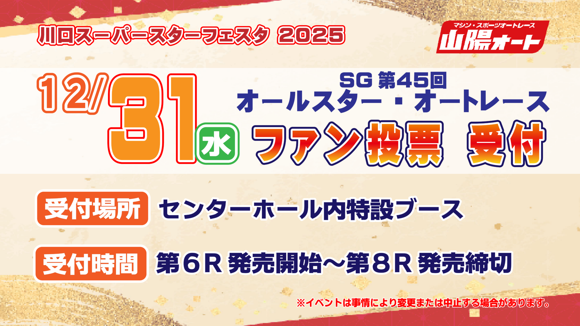 12月30日・31日に山陽オートレース場内にて、場外イベントを実施します。