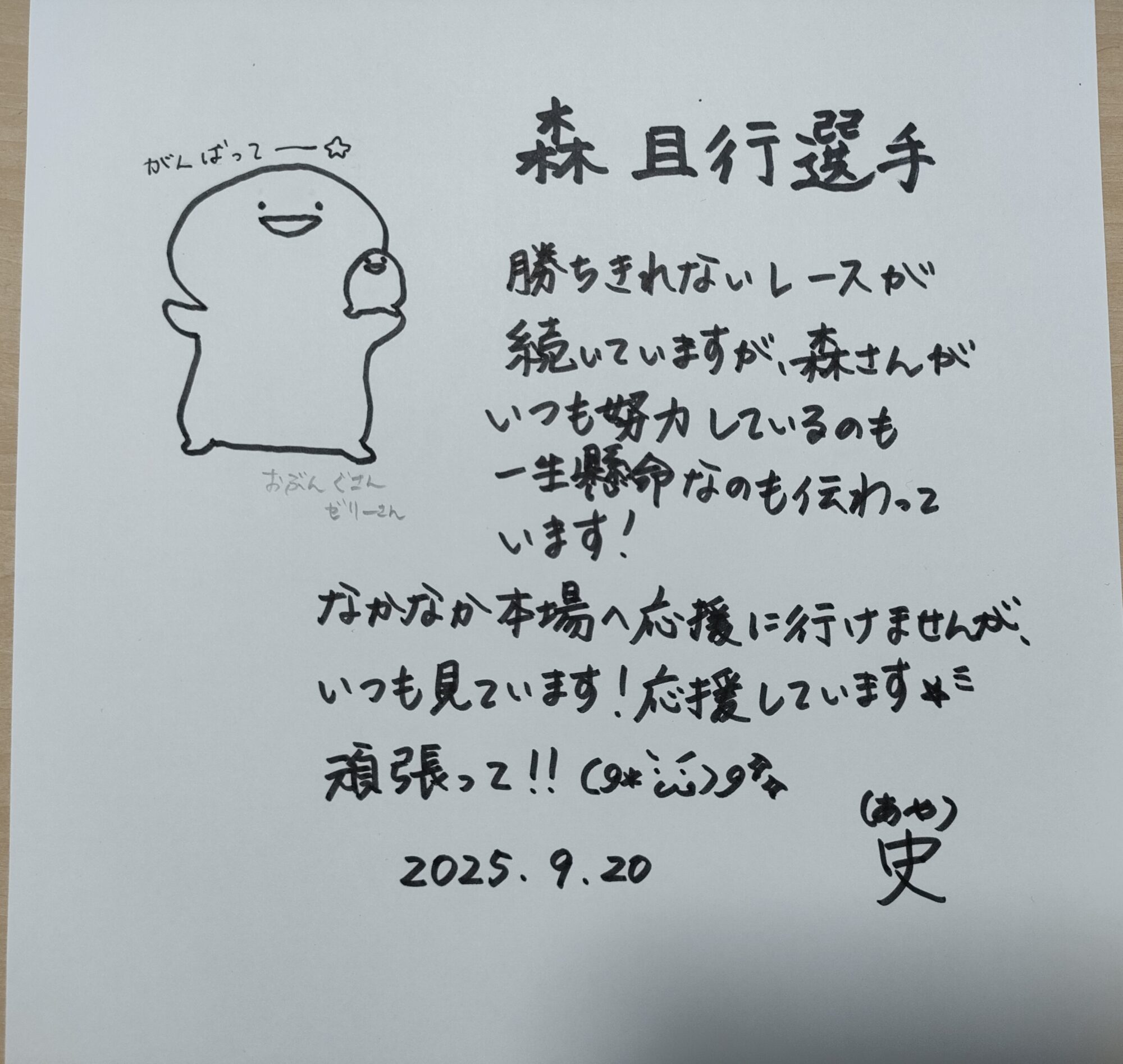どんな時でも応援していますし、いつも森さんの安全と勝利を願っ