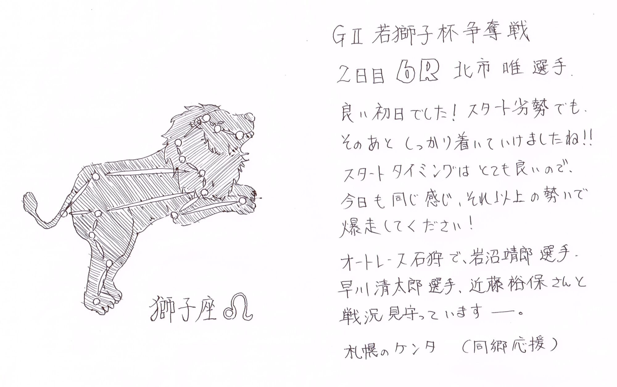 今日もいいレースして一着ゴールしてね!がんばれ!