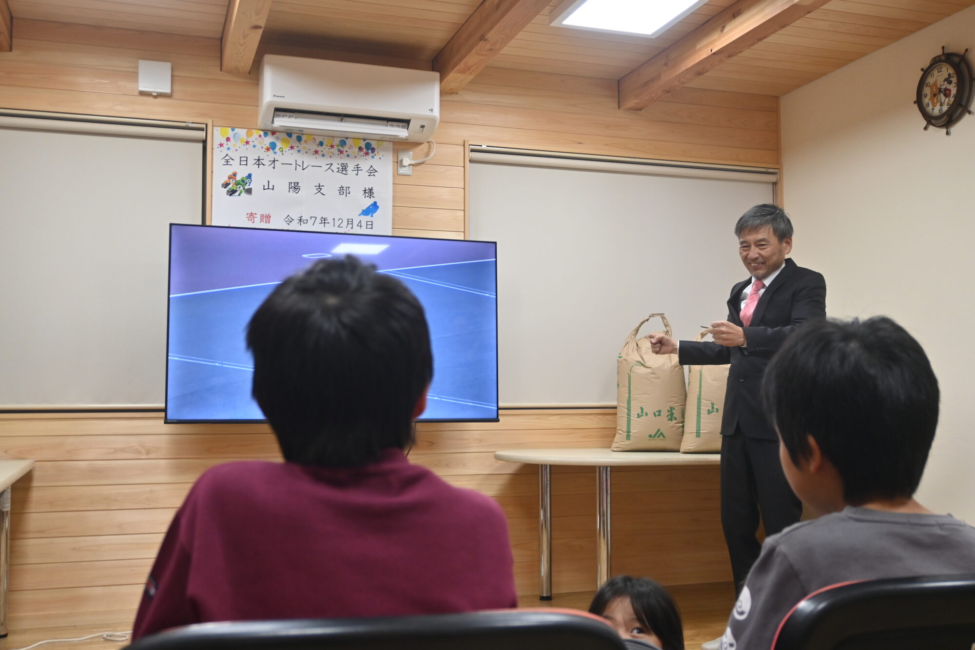 社会福祉法人 小野田陽光園へ、65型テレビ・お米5俵が寄贈されました。
